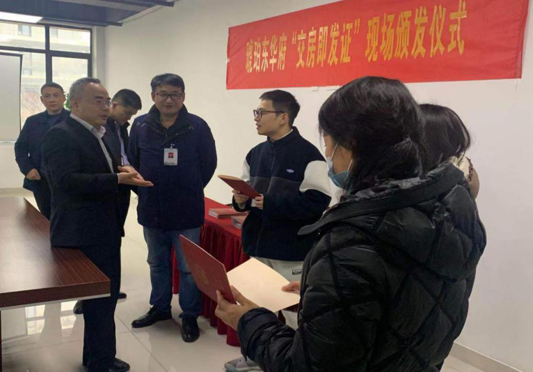 琥珀东华府作为瑶海区首个“交房即发证”试点项目,率先在区域内实现交房、拿证“零时差”,业主办证“零跑次”。“交房即发证”简化了业主的办证手续,有效节省了时间成本和人力成本,使业主实现了住权与产权同步,有效增强了群众的获得感、幸福感。