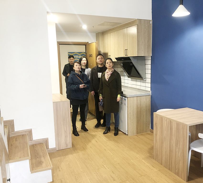 罗艳丽副局长参观完优乐公寓休闲娱乐区、公共厨房、联合办公区、公寓样板间、露天阳台等功能区后,对优乐公寓三孝口店的总体布局及品质表示高度认可,对琥珀租赁的品牌理念与创新精神表示高度赞扬。