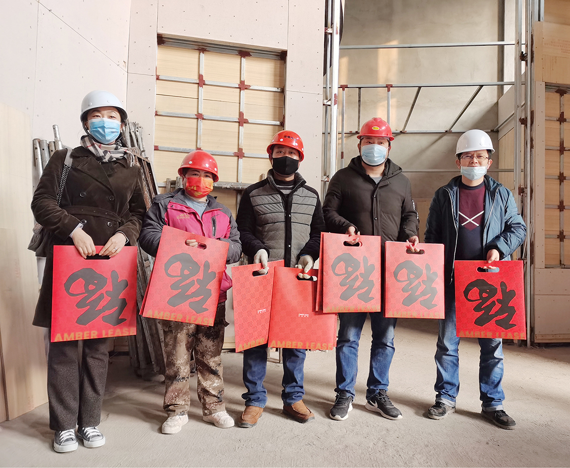 结束时,田总还向现场工人赠送了琥珀租赁定制的春联礼包,并向大家致以新年祝福。